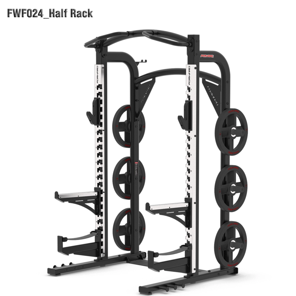 The FWF‑024 Half Rack is a versatile strength-training station made for serious lifting. With secure bar storage, integrated catch systems, and band‑peg functionality, it’s built to support squats, presses, pull-ups, and more in a compact yet rugged steel frame.