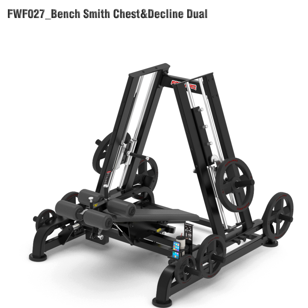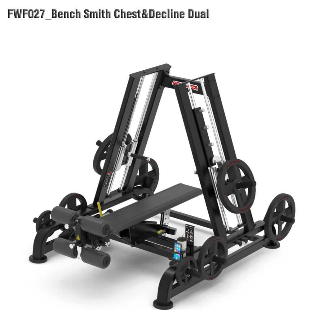 The FWF‑027 Bench Smith Chest & Decline Dual is engineered for comprehensive pectoral development. With two training modes — chest press and decline press — and a fully adjustable bench, this machine delivers stability, safety, and biomechanical precision in one station.