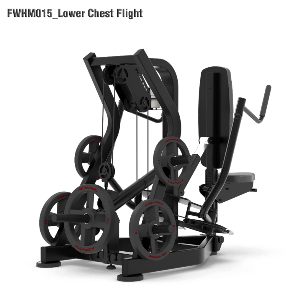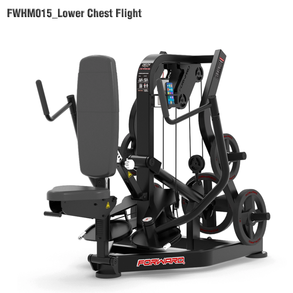 The FORWARD® FWHM‑015 Lower Chest Flight delivers biomechanically optimized resistance for the lower and inner pectorals, featuring independent arms, gas-assisted seat adjustment, and band‑peg capacity.