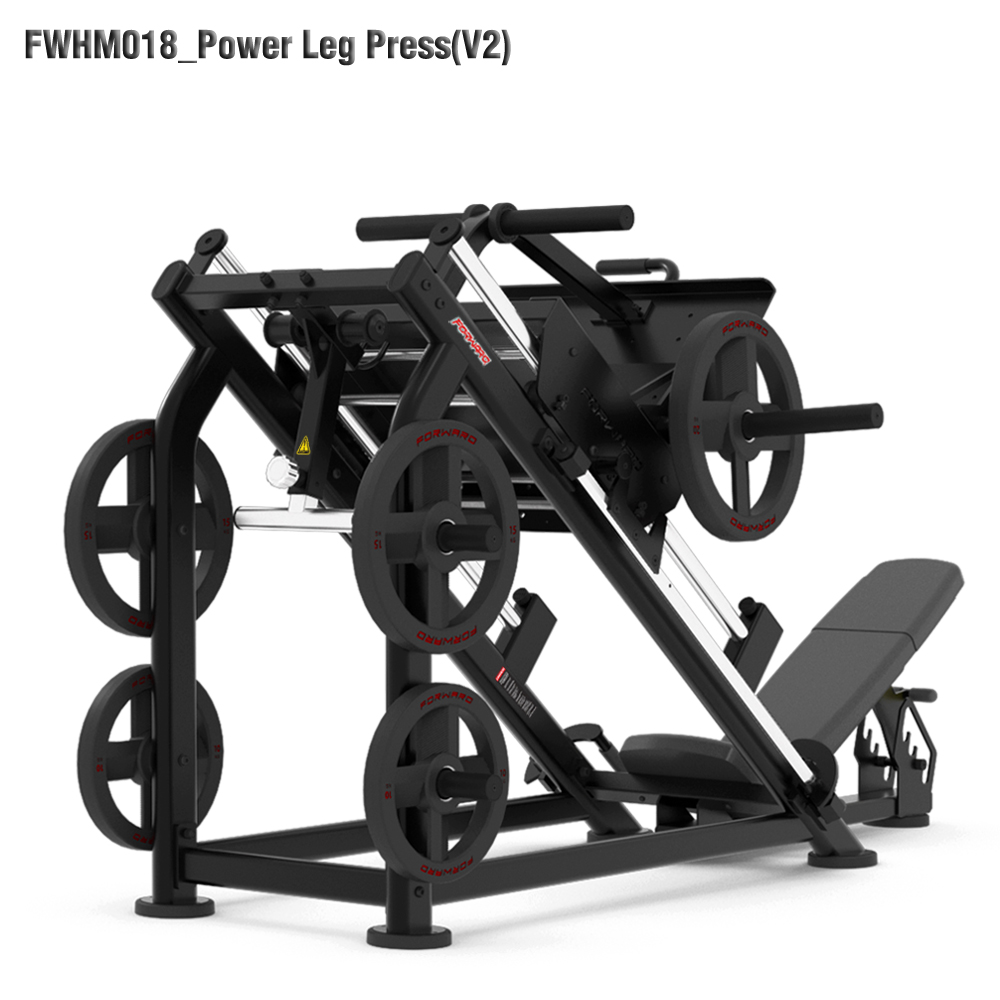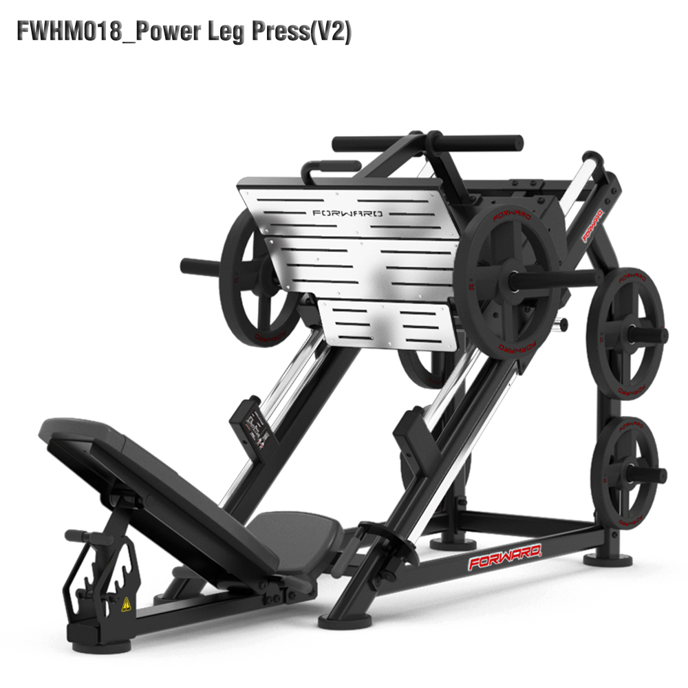 The FORWARD® FWHM-018 Power Leg Press is a heavy-duty sliding-leg press machine that targets the quads and glutes, featuring a linear rail system, adjustable backrest, and multiple resistance points.