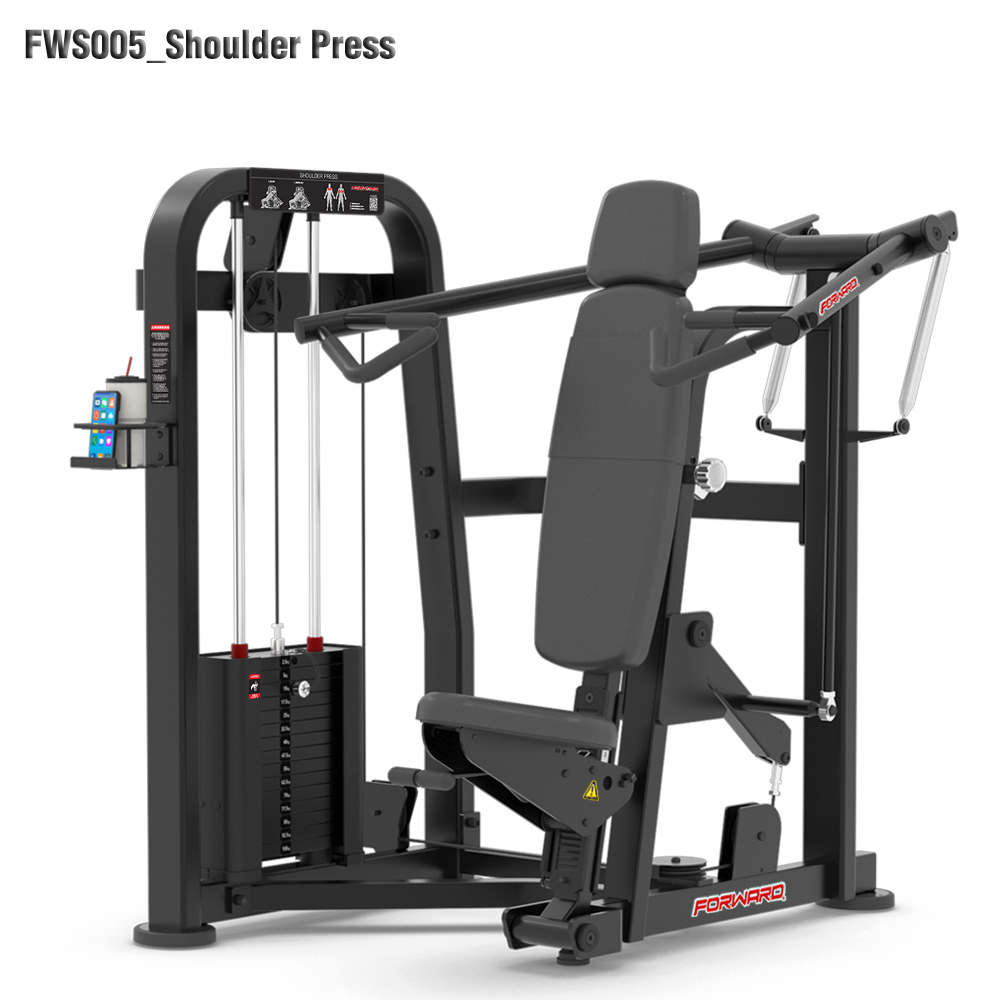 The FORWARD® FWS‑005 Shoulder Press delivers a smooth, guided overhead press motion with a gas‑assisted adjustable seat, counterweight balance, and ergonomic grip options for powerful deltoid training.