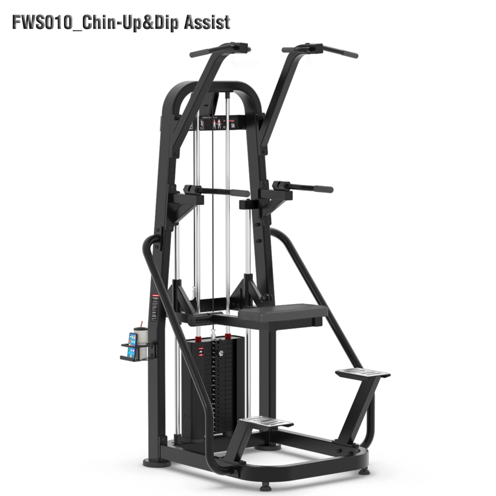 Designed for commercial gyms and strength facilities, the FWS‑010 Assisted Chin‑Up & Dip machine provides a guided, supported framework for building upper-body strength. The counterweight system helps offset bodyweight, making dips and chin-ups more accessible while still challenging. It features multi-grip bars for different pull-up styles (wide, neutral, etc.), and carefully placed dip handles for comfortable pressing.